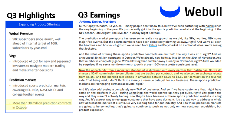 > Using October's 30m notional: $600k in revenue ($300k Webull / $300k Kalshi). Post kickback, net using the mid is: $412k Webull / $188k Kalshi)