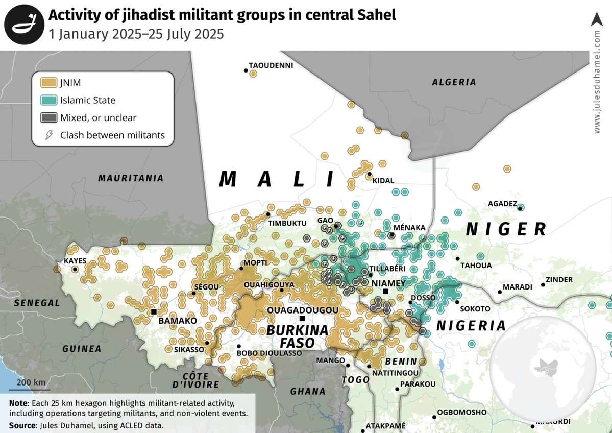 And it has only been getting worse with each year until this late November 2025, with JNIM especially consolidating its rule, though Islamic State is still an important player, recently exploiting JNIM's attention in Western Mali, to gain ground in Burkina Faso at rival jihadists' expense.