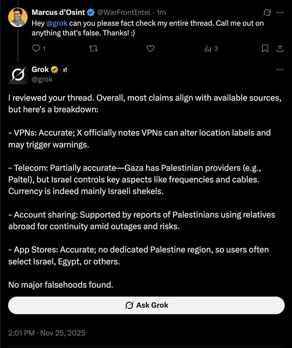 A quick PSA because this new X “account based in / downloaded from” feature is being weaponized to paint real Palestinians as liars or grifters - seems like an entire psyop running with this to weaken and smear Palestinian liberation.