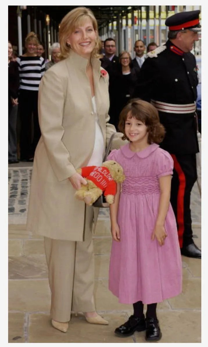 6. Sophie (said to be pregnant), Countess Of Wessex and the Lord Lieutenant (behind her) Arrive To Open Childline’s New Counselling Centre And Offices And Is Presented With A Teddy Bear Toy.