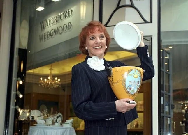 23. Esther Rantzen Unveils Exclusive Wedgewood Vase Designed by HSH Prince Albert to be Auctioned for Childline and Mission France at Waterford Wedgewood Store in London.