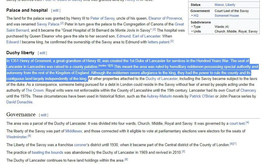 31. The Savoy Hotel again. The Liberty of the Savoy.