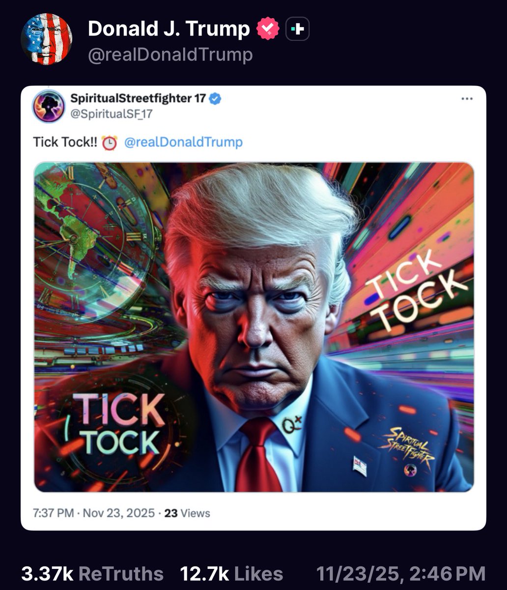 WHAT HAPPENS WHEN a sitting President turns his feed into a live, time-stamped Notice to the [CABAL]…