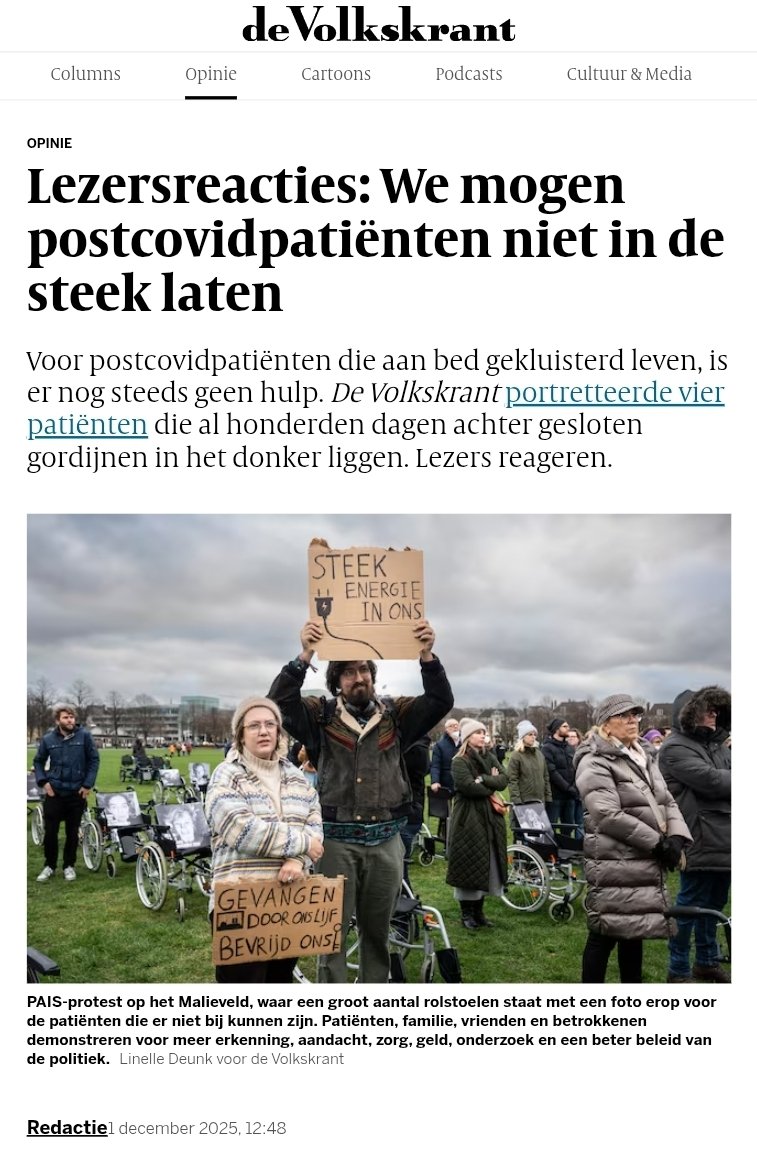 1) Interview in @ndnl met Linda en Eva en huisarts Jojanneke Kant (vragendokter). Over de ziektelast, gebrek aan erkenning en de noodzaak van @niethersteld en het protest. Image