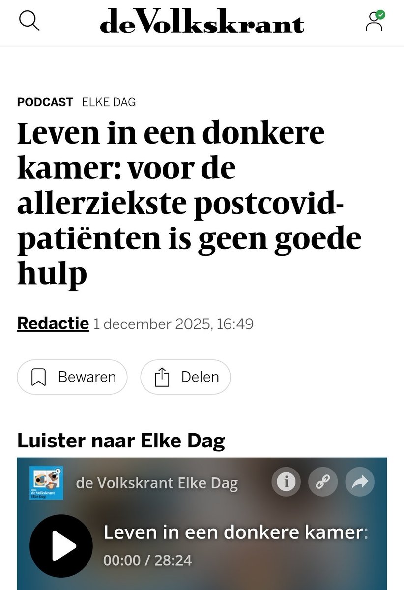 Ontzagwekkend stuk van 6 pagina's over zeer ernstig zieke Long Covid patiënten, waaronder een bij wie inmiddels euthanasie plaatsgevonden heeft. Ik daag eenieder uit ongeroerd te blijven bij deze tekst en foto's.