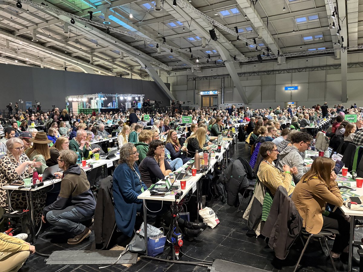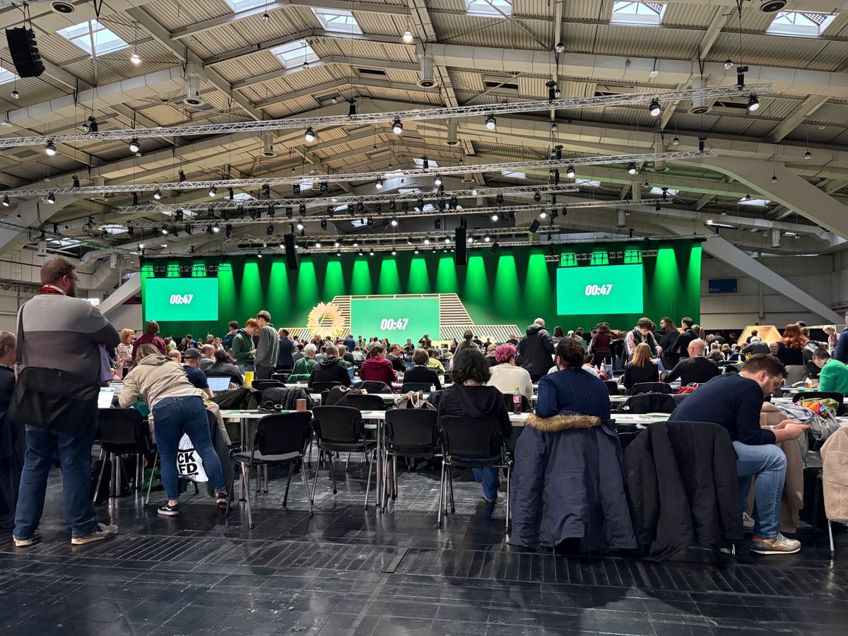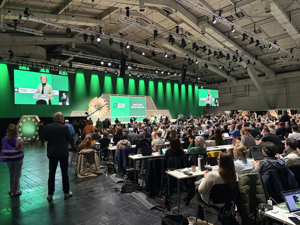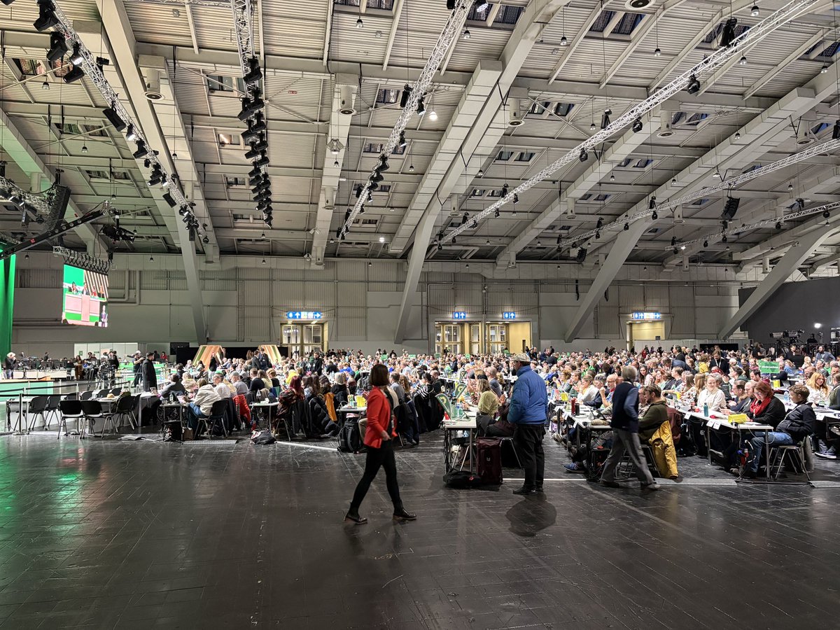 We zijn bij de Bundes Delegierten Konferenz van de Groene partij, het Duitse GroenLinks, zeg maar. Deze conferentie duurt tot en met zondag (wij gaan maar 24 uur ofzo)