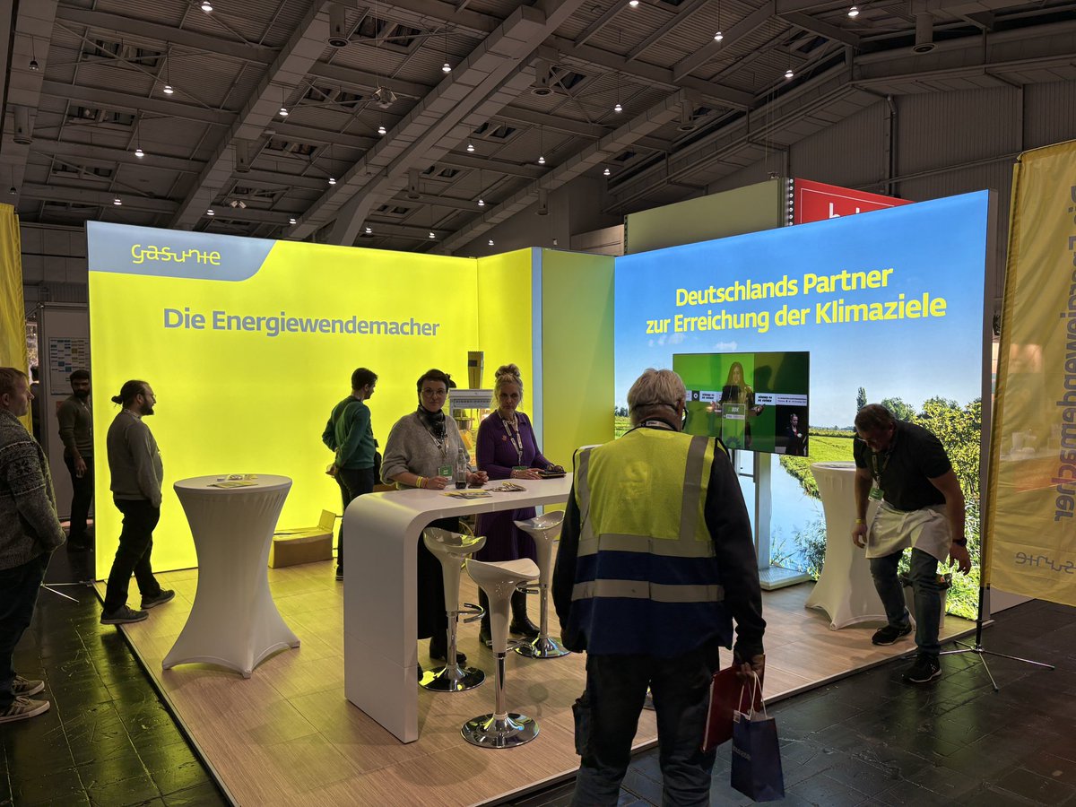 Ook gek of on-Nederlands: naast de congreshal is een soort beurs met bedrijven die kennelijk de Groenen steunen, al dan niet om hier te mogen staan. Waaronder… de Gasunie.