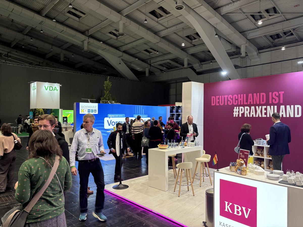 We zijn bij de Messe in Hannover en die is zo groot dat we de weg kwijt zijn. En veel groene partijleden ook.
