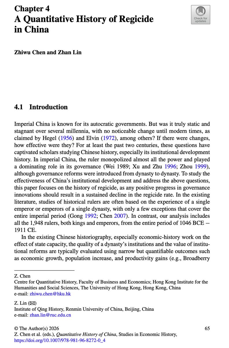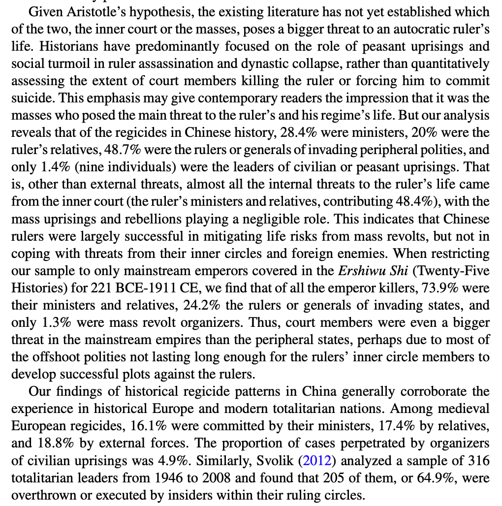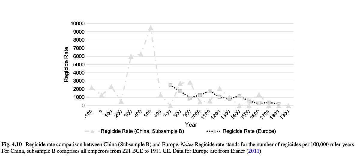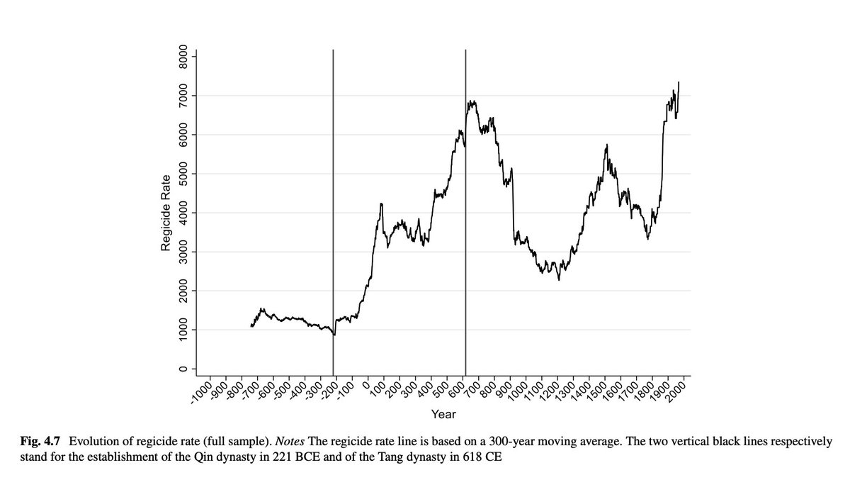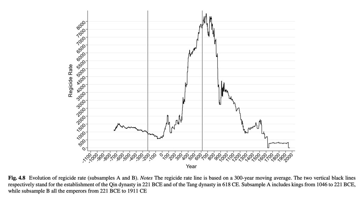 Source for the above is page 68, chapter 4 "A Quantitative History of Regicide in China," in the Quantitive History of China book in the QT. Image