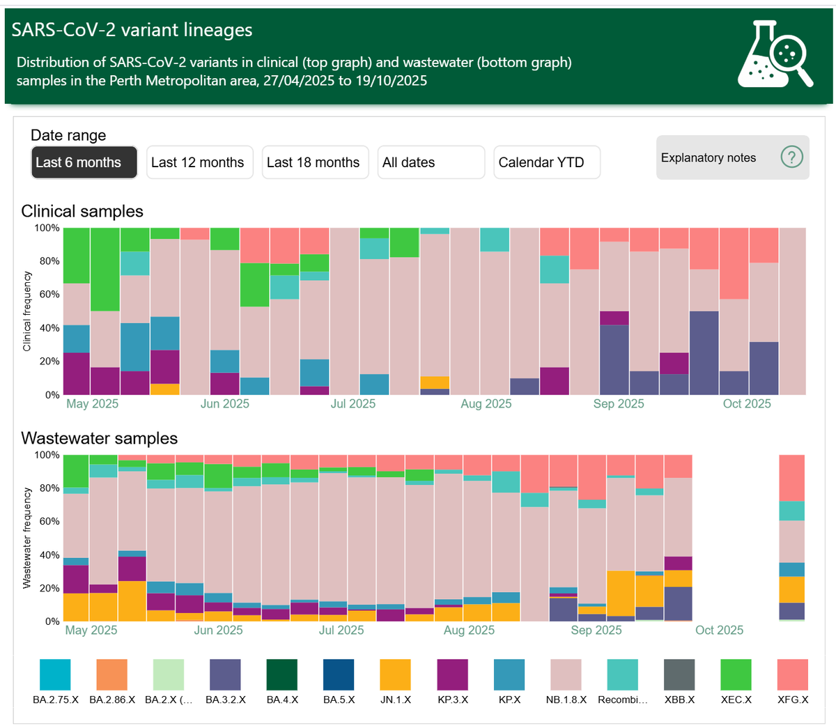 WA Health revamped their dashboard using Power BI, so it is more interactive now and a bit easier to get precise values. However they paused the wastewater variant analysis for 3 weeks, so I’ve estimated the values in that gap.