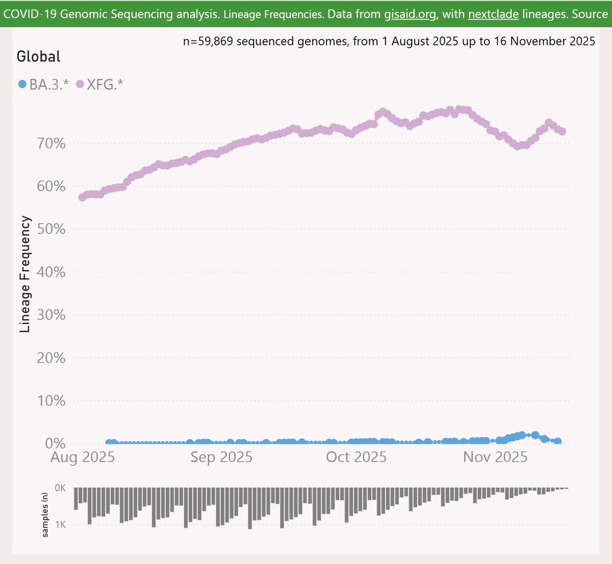 BA.3.2.* has continued to show signs of growth. Recent samples have been reported from South Africa, Australia, across Europe, and a traveller entering the US from Kenya.