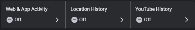 Disable Google Activity tracking to stop Web and App Activity, Location History, and YouTube History from being recorded.