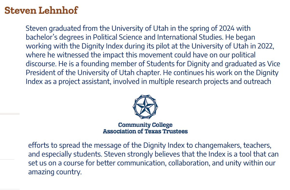 The Dignity Index partnered with University of Utah, Kem C. Gardener Policy Institute, David Eccles School of Business, and Hinckley Institute of Politics, claiming to have chosen students with politically and ideologically diverse backgrounds, to pilot a system where they would help determine a scoring mechanism for speech.