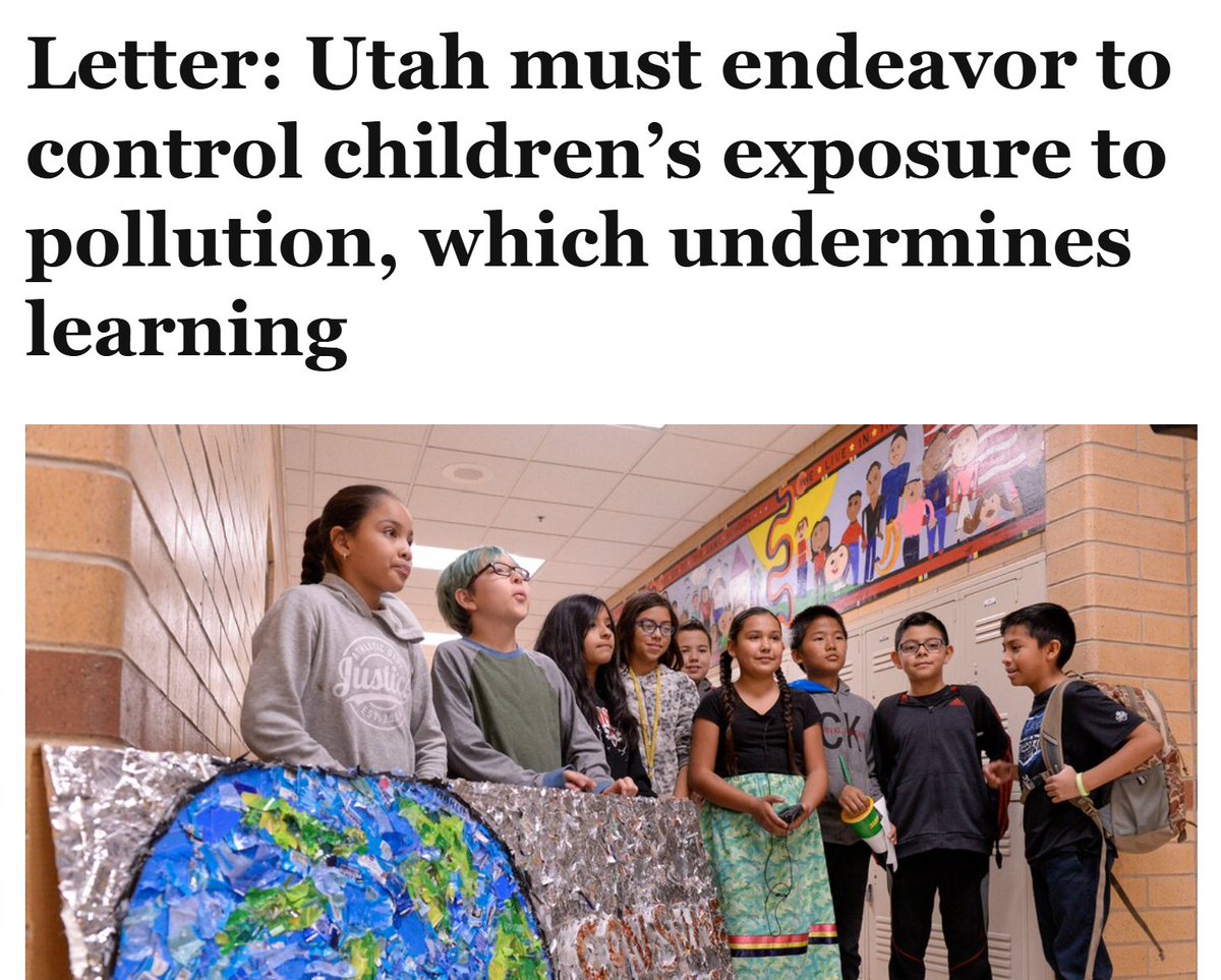 Emalee wrote in an article in the Salt Lake Tribune that air pollution near schools is linked to lower test scores and that kids at disadvantaged schools are exposed to higher levels of air pollution. She concludes that since, in her opinion, early learning is essential to a child’s education along with the location of these schools, there is an inequity in the education stemming from pollution.