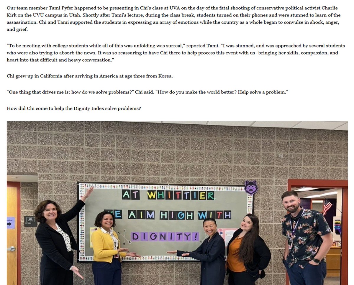 Oh, and what a crazy coincidence that fellow Dignity Index team member, Tami Pyfer, happened to be with Chi Kim when Charlie Kirk was shot.