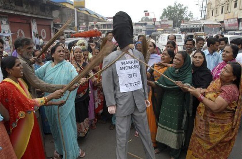 Cuando la noticia llegó a la población de Bhopal, el pueblo explotó de rabia, ahorcando muñecos con su cara, pisotearon su foto, quemaron fotos suyas y le escupieron, maldiciéndole allá donde esté.