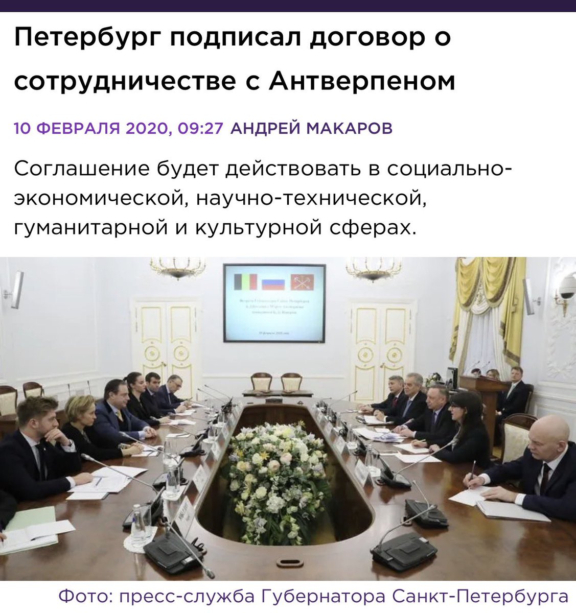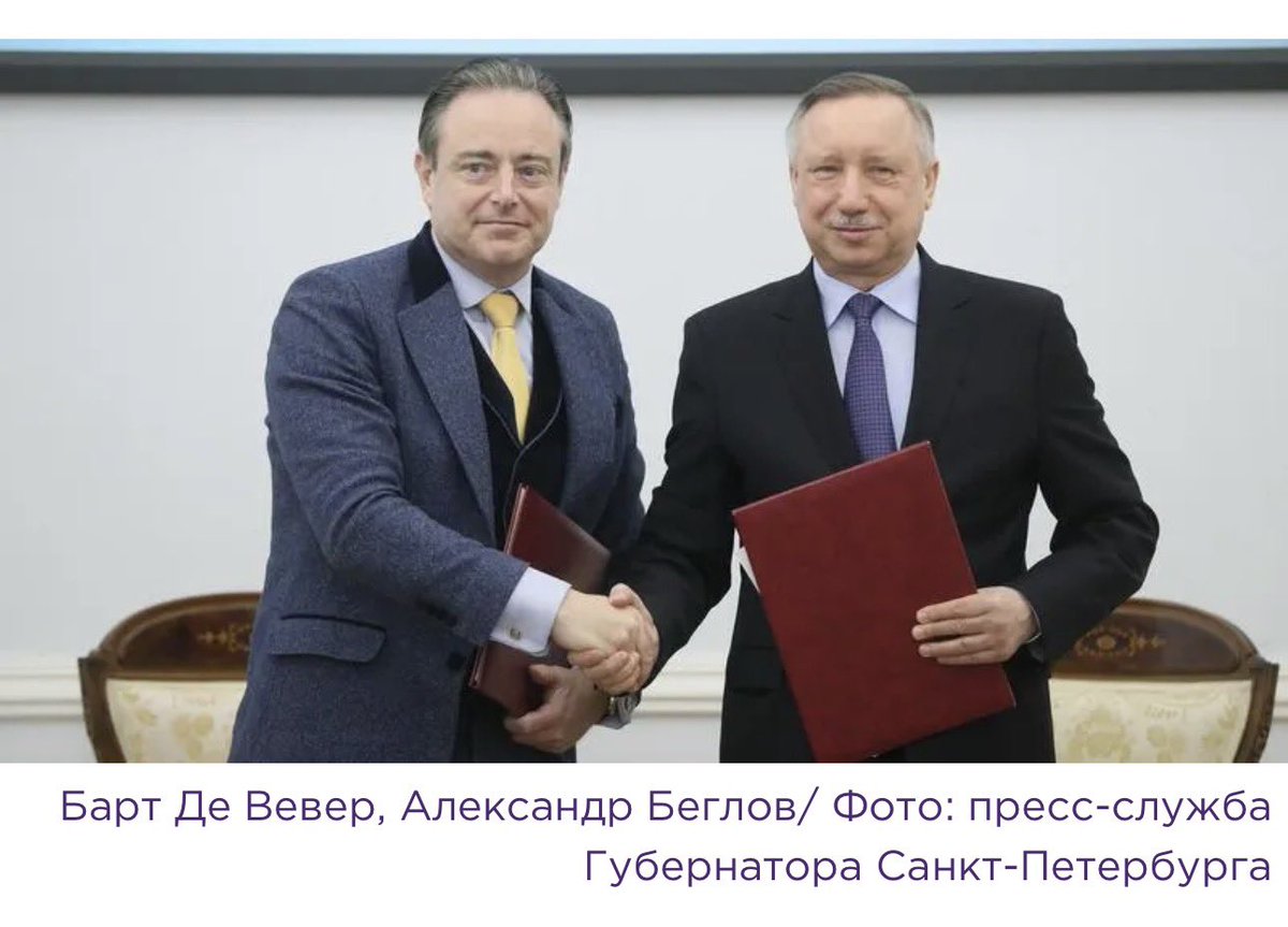 In February 2020, the Kremlin elite strengthened its ties to Europe on the ground: On that day, the governor of St. Petersburg, Alexander Beglov, met with the mayor of Antwerp, Bart De Wever, and his delegation in St. Petersburg. The event was organized by the St. Petersburg city administration.