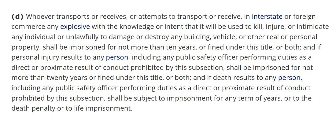Cole is currently charged with violating 18 USC 844(d) and 18 USC 844(i).