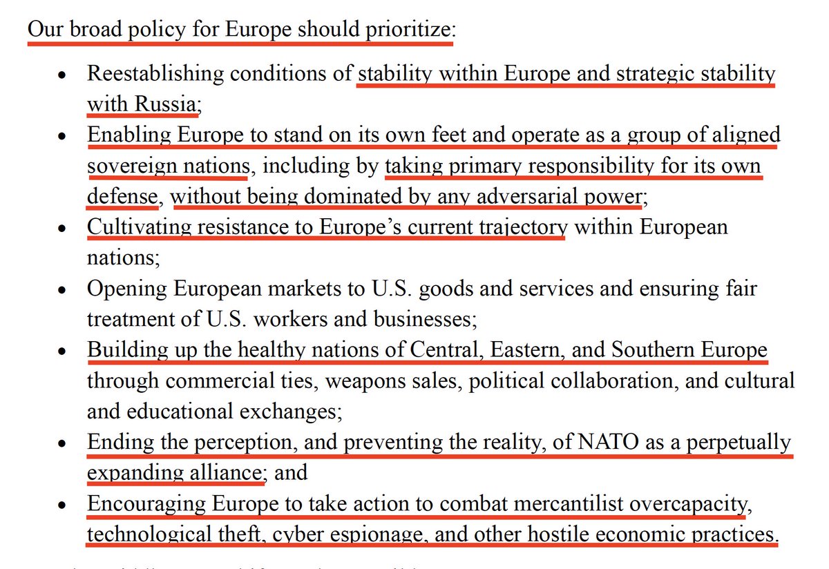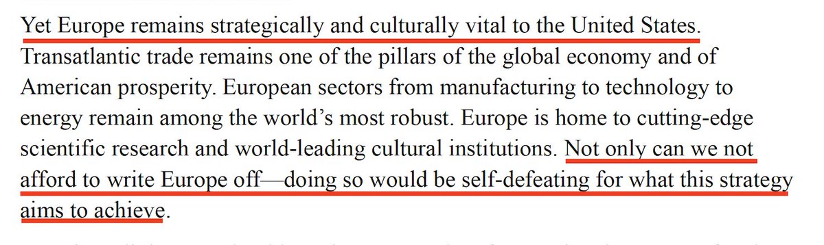 🧵 The new National Security Strategy of the US is more pro-Europe than many Europeans are.