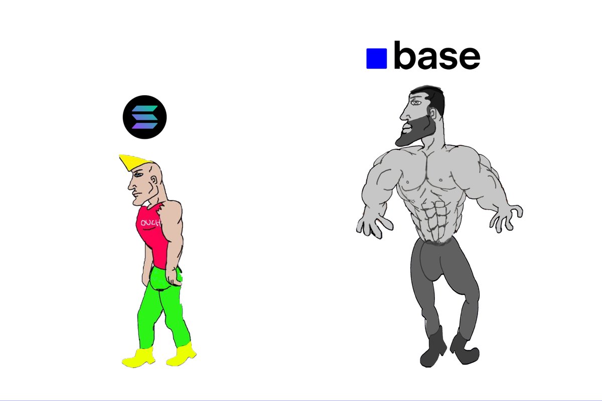 @Base — a standard Ethereum L2 on OP Stack, the very "band-aid" Solana mocked — starts leading in: