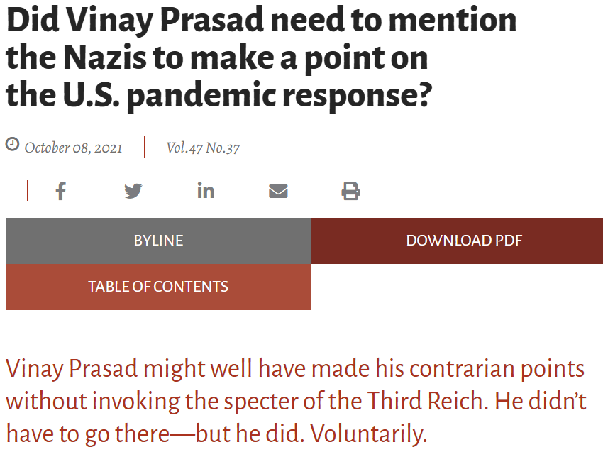 Similar flawed Nazi comparisons were made by Dr. Vinay Prasad, head of CBER within the FDA, i.e. one of the lead vaccine regulators in the USA (@VPrasadMDMPH).