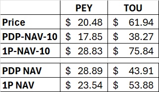 If $PEY.to had $TOU.to's PDP valuation it would sell for $28.89.