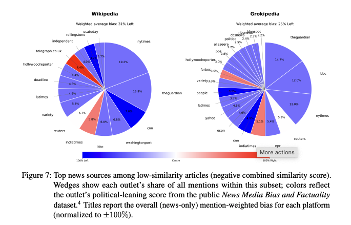 When we looked more closely into the political shift, analysing the references used in both Wikipedia and Grokipedia, we found: