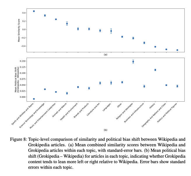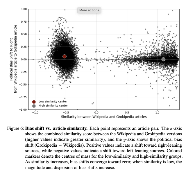 Grokipedia is shifted to the right, compared to Wikipedia. On average, the shift is not huge, and Grokipedia is still left-leaning, like Wikipedia.