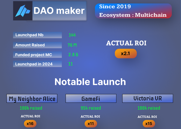 DAO Maker, the most renowned of launchpads, has led numerous successful raises, acclaimed for their excellent due diligence and quality incubated projects.
