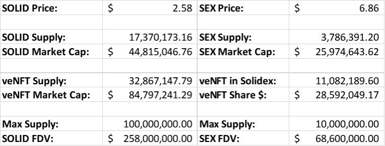 Firstly, I want to take a look at Liquidity and 24H Volume for @solidlyexchange. This will give us a good idea if people are using the exchange. I compiled the numbers for some of Solidly’s biggest pools, but not all of them. Take a look:
