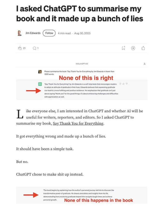 LLMs tell you what they think you expect to read, often brazenly lying instead of acknowledging what they don’t know, even on simple things. This is annoying for trivial questions, but becomes a big societal problem when relying on LLMs for major geopolitical issues.