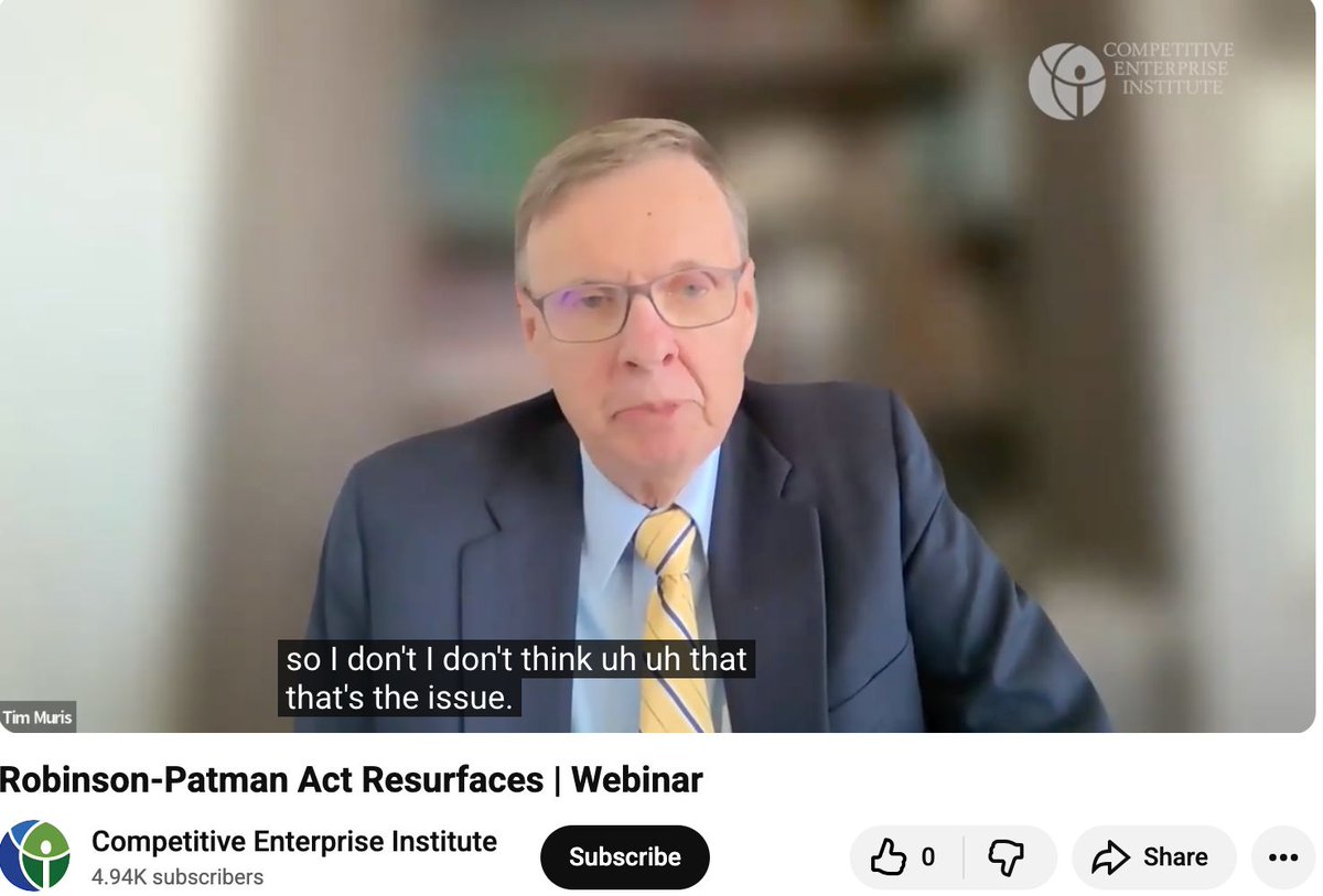 1. Tim Muris, who held top roles at the FTC in the 1970s-80s and 2000s, has teamed up with the Competitive Enterprise Institute on a new effort to discredit and bury the Robinson-Patman Act.
