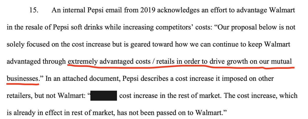 1. For at least 10 years, Pepsi has conspired with Walmart to force up grocery prices. That’s the shocking evidence made public today in an unsealed FTC lawsuit. The suit was dropped in May by @AFergusonFTC just before it was to be un-redacted. We went to court to get it unsealed & won.