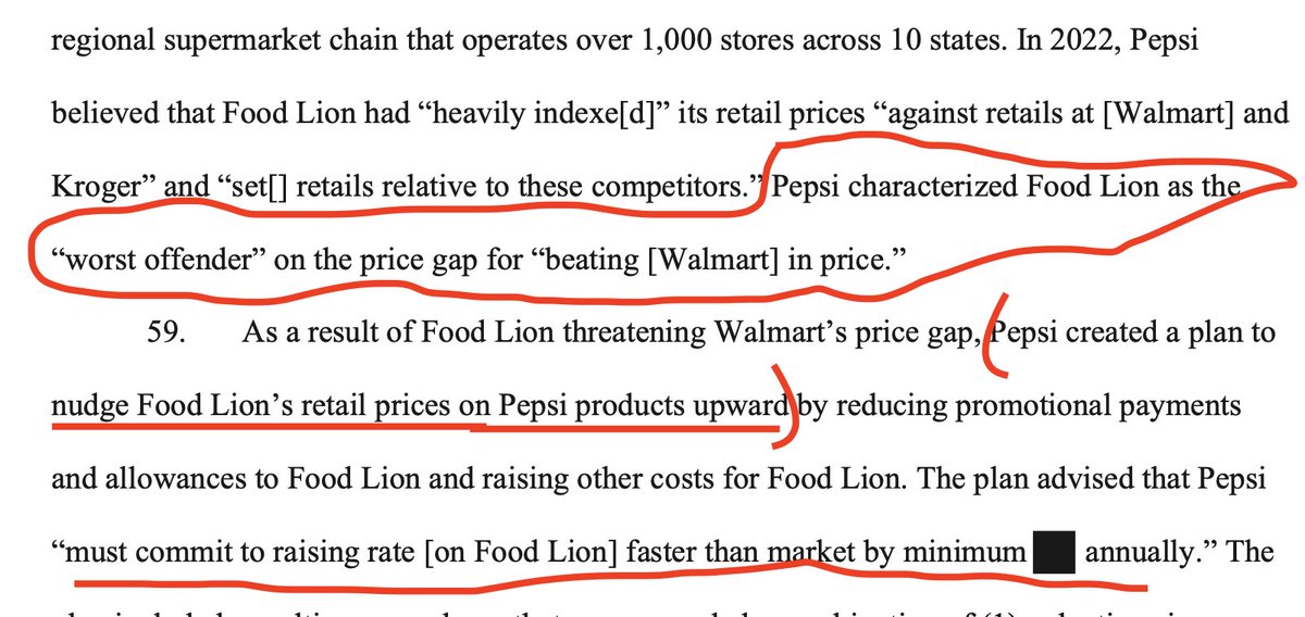 1. This is now unsealed. The FTC filing shows Pepsi worked closely with Walmart to force other retailers to raise their prices on Pepsi products. The Khan-era FTC brought the case; Trump/Ferguson dropped it as “weak.” It looks anything but. It directly targets high prices.