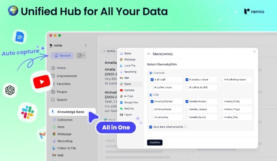 End the frustrating search across countless apps where your knowledge is trapped. remio 2.0 breaks down the silos by integrating everything from websites to Slack and emails…