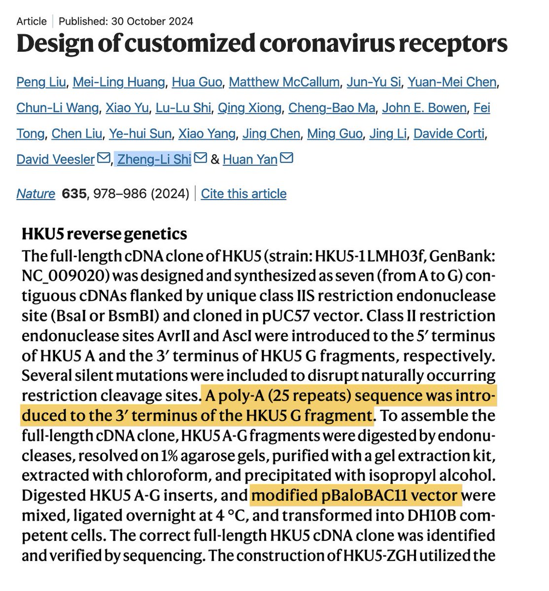24/ Consequently, the plasmid flanking the HKU4r-HZAU-2020 genome can be identified as pBAC-CMV, whose Ultimate Origin is Zhengli Shi's lab