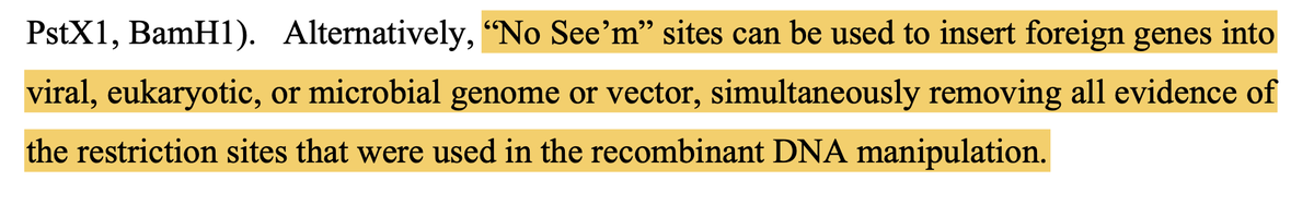 40/ Baric, in a working paper on biological weapons, notes that the No See'm approach can be used to insert foreign genes into a virus, leaving no evidence of the manipulation