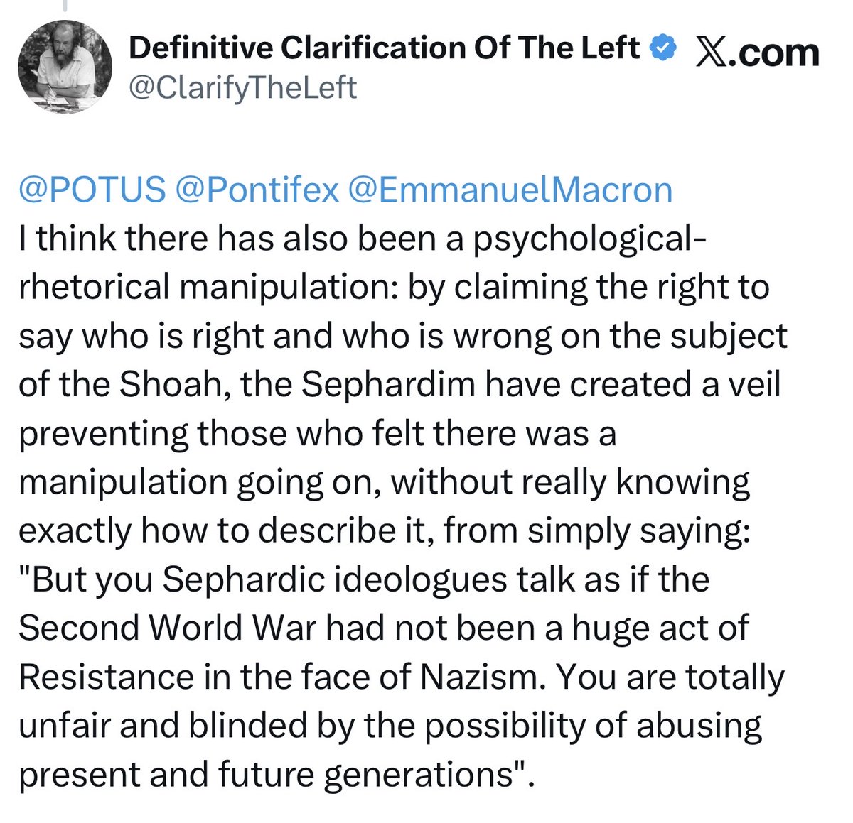 @ClarifyTheLeft @IslamInvasion @realannapaulina @GenFlynn @MelGibsonNew @PressSec @CPAC @StateDRL @TuckerCarlson @billmaher @GuntherEagleman @jordanbpeterson @GadSaad @BretWeinstein @joerogan @ShopFloorNAM @elonmusk @KremlinRussia_E @BlackRock @ADL @AIPAC Where it is observed that among "Jewish intellectuals," subversion and the desire for uncontrolled social engineering are common, coupled with an inability to elucidate very serious real problems. @georgesoros @AlexanderSoros x.com/ClarifyTheLeft…