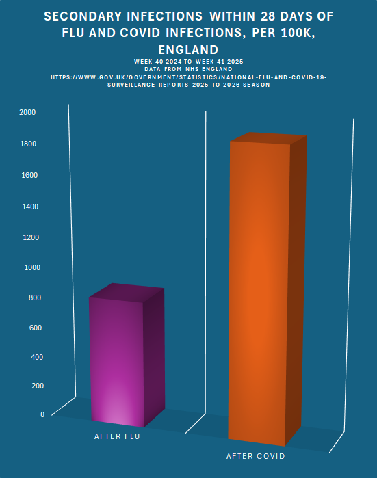 We know how many people tested positive for both flu and covid during that period, so we can see the exact proportion of how many secondary infections people suffer in the 28 days after catching Flu, and the 28 days after catching Covid.