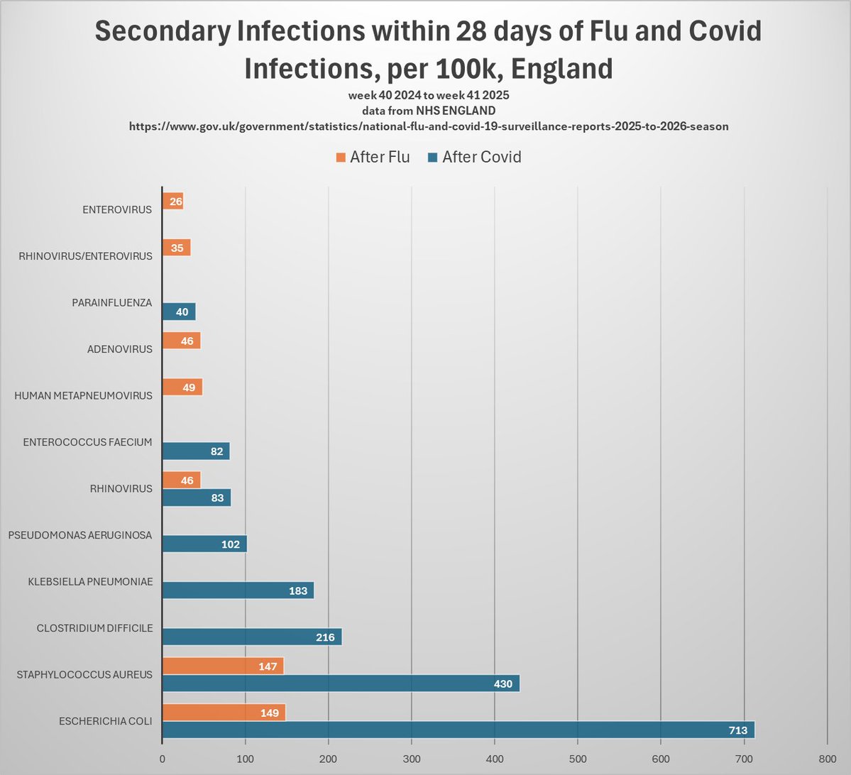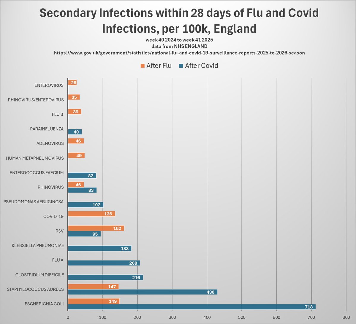 And the other kicker about this is that the infections after covid are so numerous that the most common infection after flu would come FIFTH on the infections after Covid list.