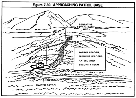 When platoon sized elements or smaller (roughly under 50 personnel) need to temporarily stop while operating in the field, whether it be to rest, reorganize after an engagement, hide during a long reconnaissance mission, perform maintenance on equipment, or run a basic base for planning and executing their next operations, a Patrol Base (PB) is formed. The PB exists as a concealed and secure location for units to rest, resupply, and perform mission planning. The PB exists for less than 24 hours and the area is never reused by the same unit twice. The strength of these bases lies in their stealth and mobility. The unit is concealed and is never truly hunkered down, so they can leave at a moment’s notice.