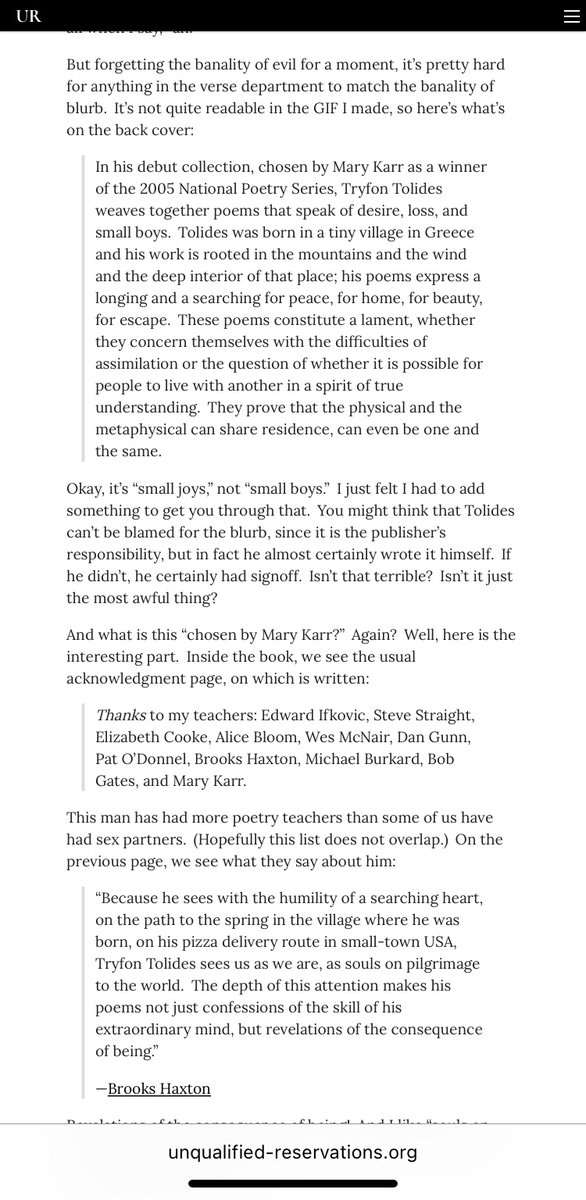 @curtis_yarvin This doesn’t mean Carver’s bad, just that he’s easy for MFAs to turn into silly tricks. Likewise the take economy was about teaching us how to have ironic takes on how “X pop culture item is actually about Y political issue—& that’s Z” (which can be fun!)