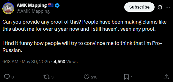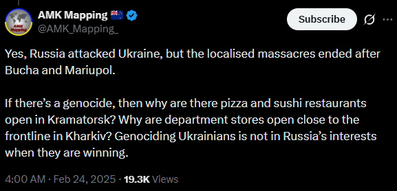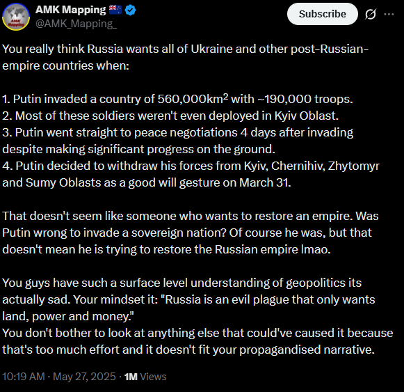 Now go donate to a pro-Ukrainian cause, because @AMK_Mapping_ sure as hell hasn't been.