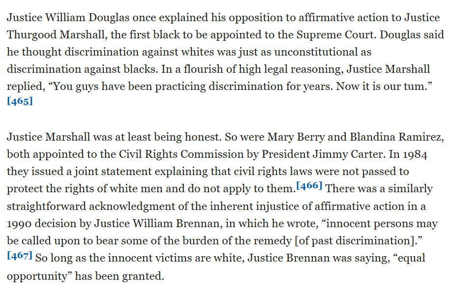 Justice Thurgood Marshall: “You guys have been practicing discrimination for years. Now it is our turn.”