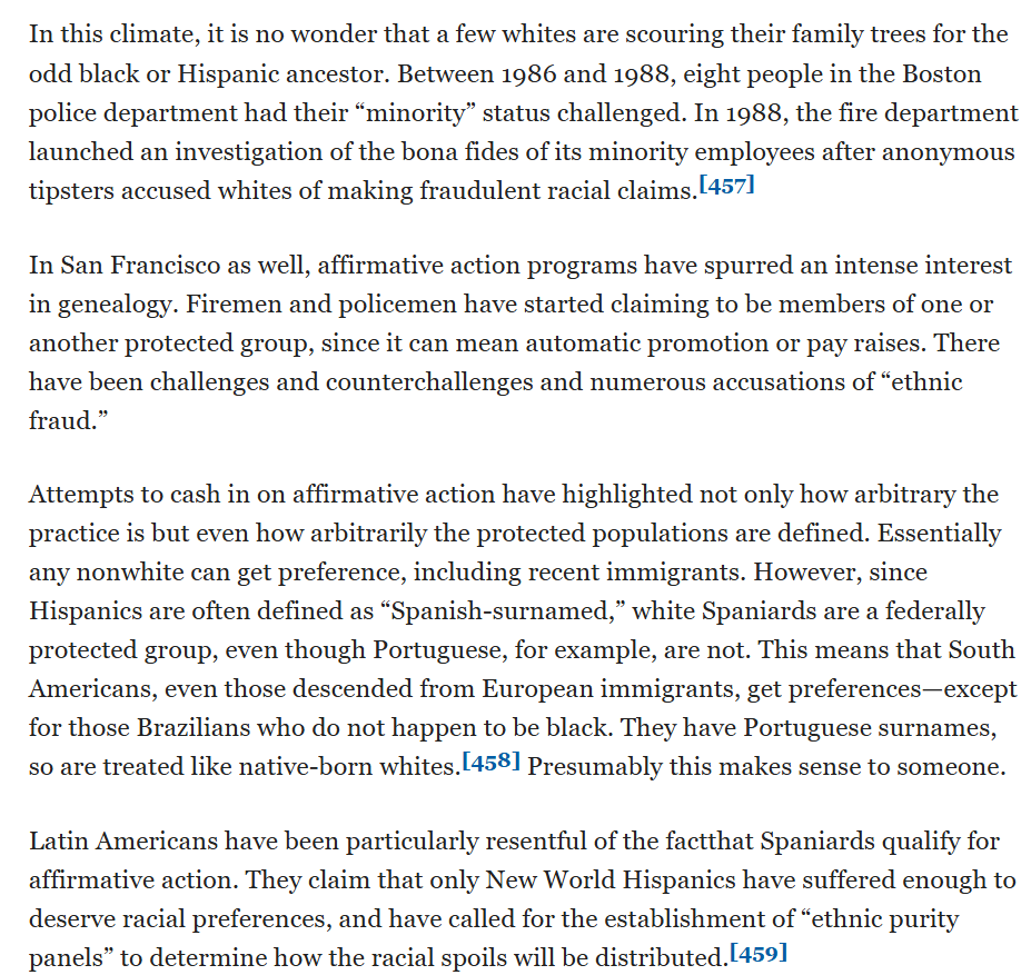 The arbitrariness of affirmative action categories - Spaniards qualify. Whites faking black, Hispanic, and Asian ancestry in response.