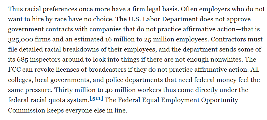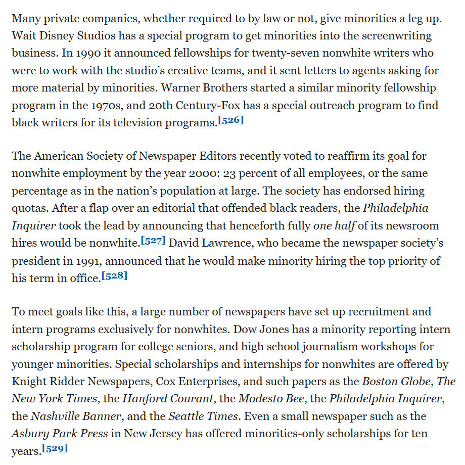 Not just a govt thing. Warner Bros, 20th Century Fox, and many newspapers have special hiring and promotion channels for nonwhites.