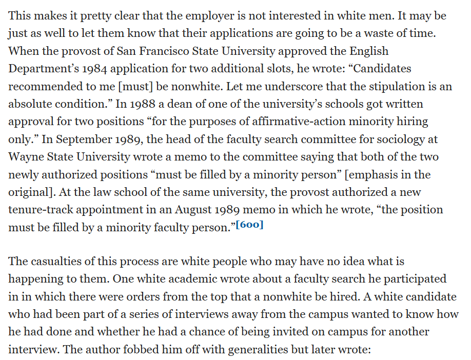 College hiring committees had to justify not hiring minorities as early as the 1970s. Many hiring processes explicitly excluded whites.