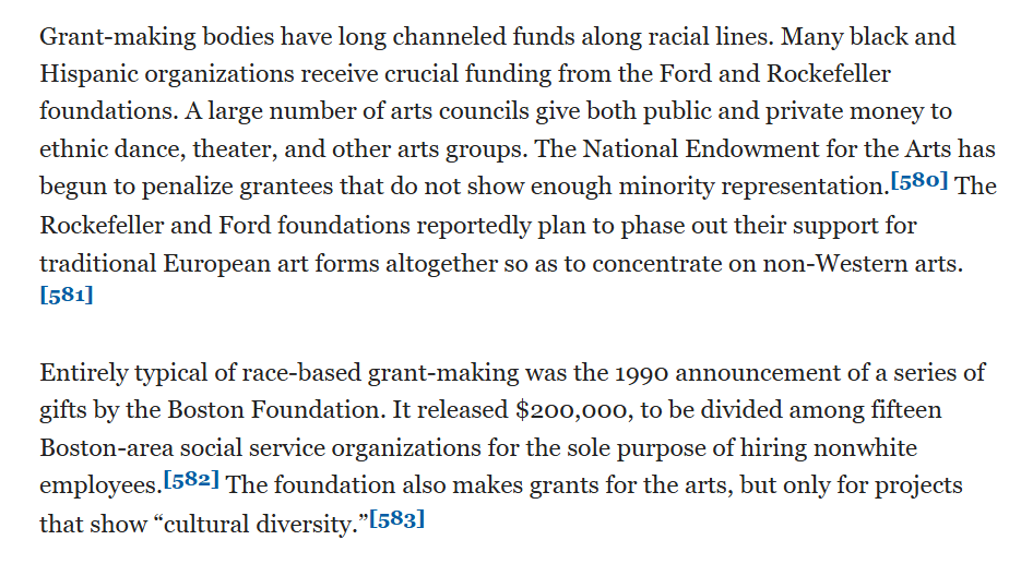 Grant-making bodies, like the Ford and Rockefeller foundations and National Endowment of the Arts, favor nonwhites.