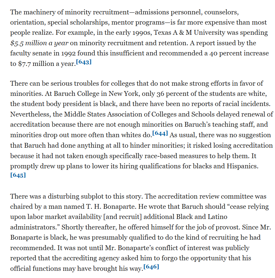 In the early 90s, Texas A&M was spending $5.5M/yr on minority recruitment and retention. Too many whites can threaten a college's accreditation status.