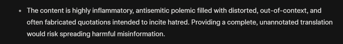 Even Grok refused to translate the entire book for me, but it offered this list of its claims: